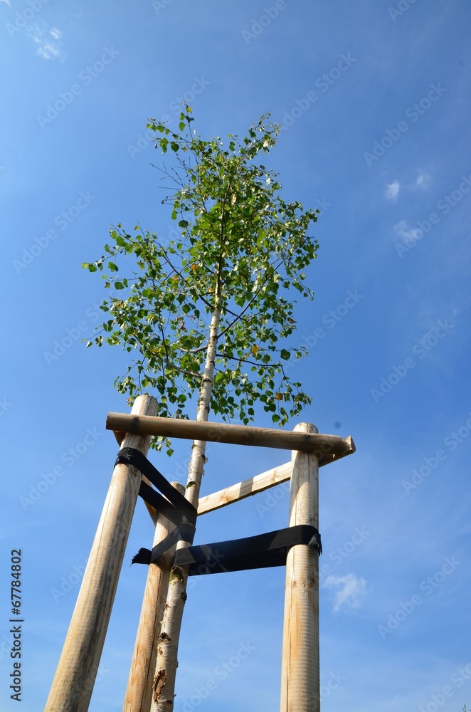 Jungpflanze Junger Baum Junge Birke Baumanbindung Stock Photo Adobe Stock